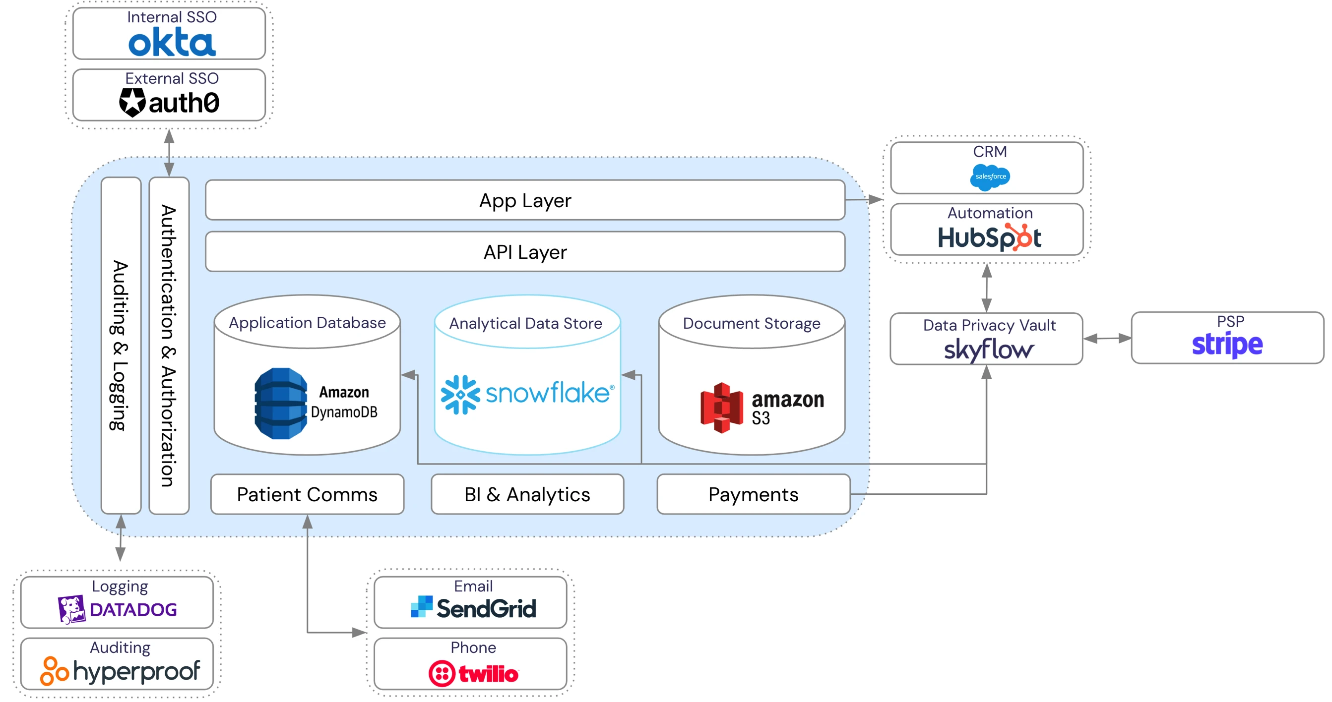 A leading US-based healthcare startup focused on simplifying access to healthcare services and reducing costs associated with healthcare delivery collects patient and payment data. Due to HIPAA and PCI DSS, collecting, managing, and processing patient and payment data is challenging.