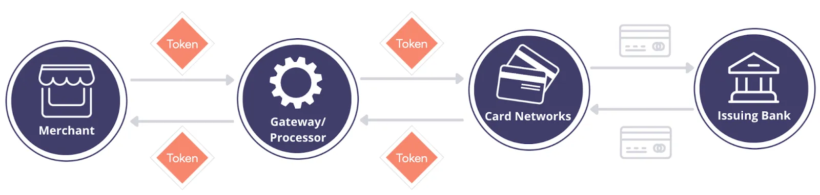 - The card network shares the token with the token gateway