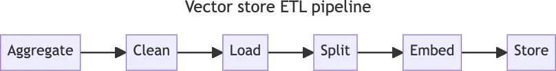 Getting your data from its source format into a vector store requires an ETL (extract, transform, load) pipeline.