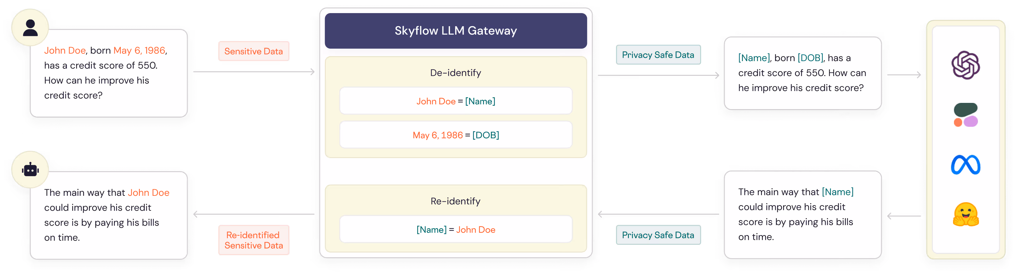 Build and deploy agents, models, and MCP servers using real customer data without leaking PII. Control data access at runtime. Deploy AI applications in production safely with dynamic access controls depending on job role and field level data governance.