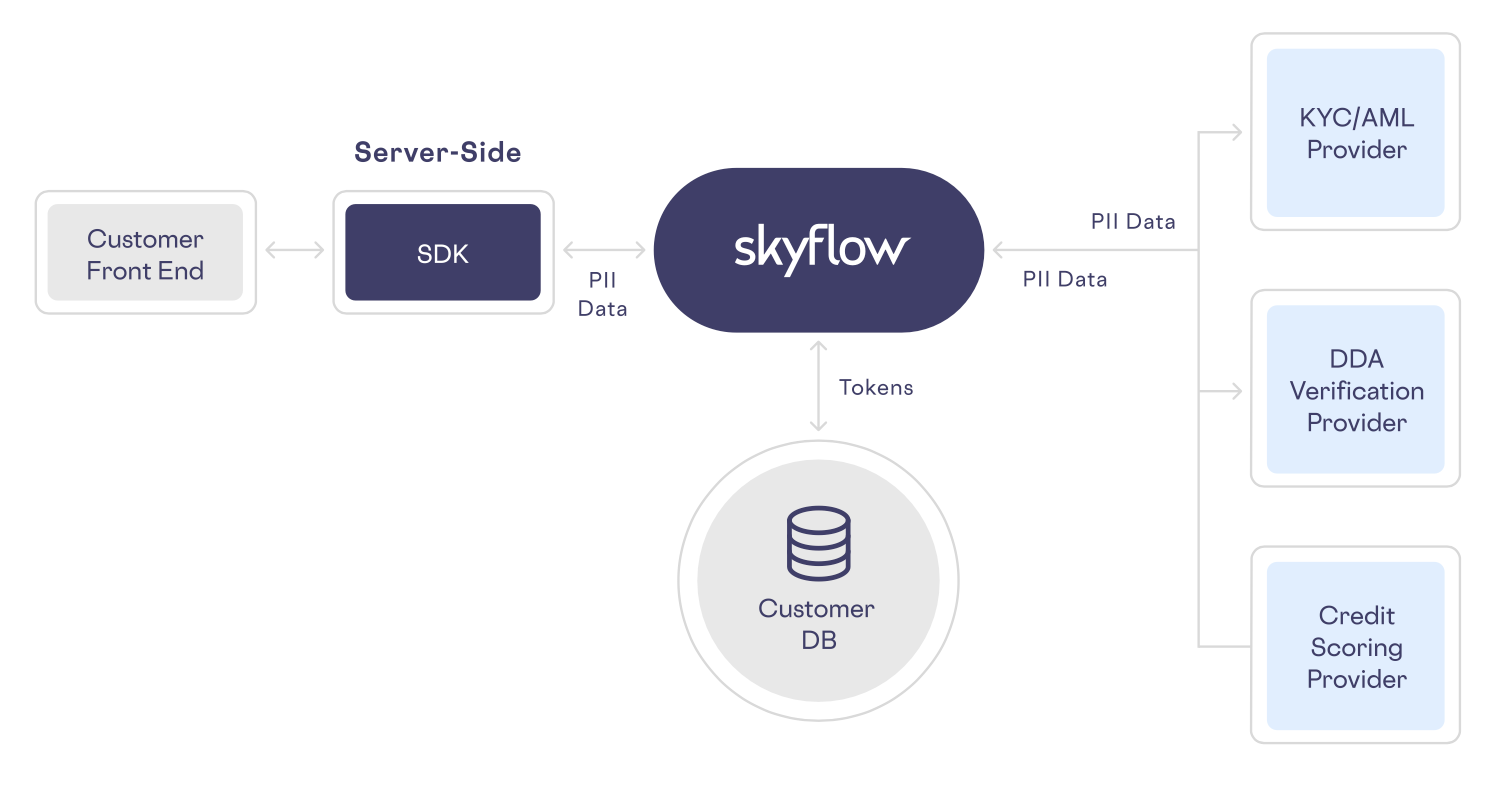 A core part of this solution is that fintech companies can integrate with any third-party API to securely share sensitive data without directly handling it. To make this easy, we’ve pre-built a number of the most commonly needed integrations (Alloy, Experian, and Plaid), and we’ve also created Skyflow Connections, a framework and toolset for easily building custom integrations. Our goal is to provide you with the data privacy and security infrastructure to protect your data and the flexibility to easily build it into your workflows so you can focus on delivering a great customer experience.