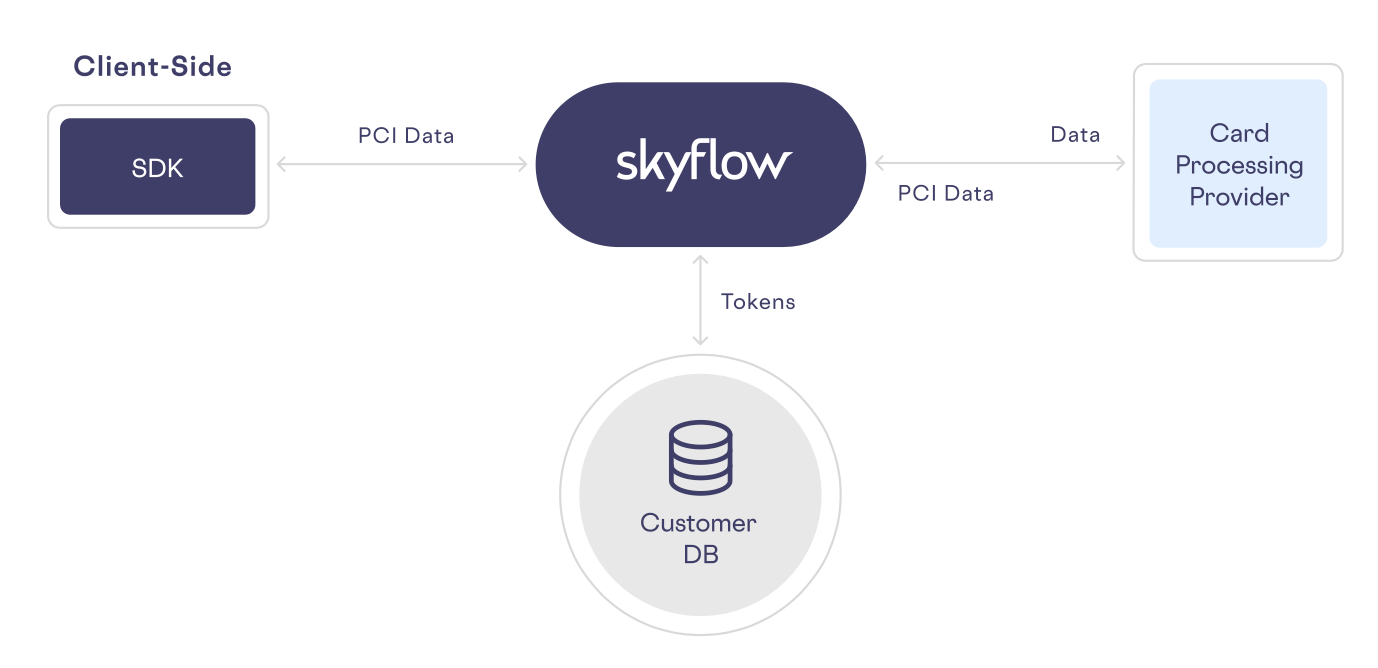 Skyflow lets fintech companies securely collect PCI data without exposing their front-end systems to any sensitive data, while letting them directly integrate and process payments with any payment processor. Most importantly, fintech companies can use the vault as a processor-agnostic third-party zero trust storage to securely store PCI data and avoid being locked into working with a single payment processor.