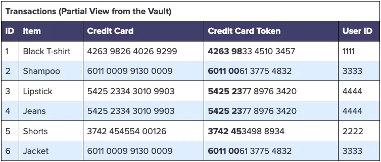- PII Tokenization: The vault replaces each sensitive data value with a token, and securely stores the original value