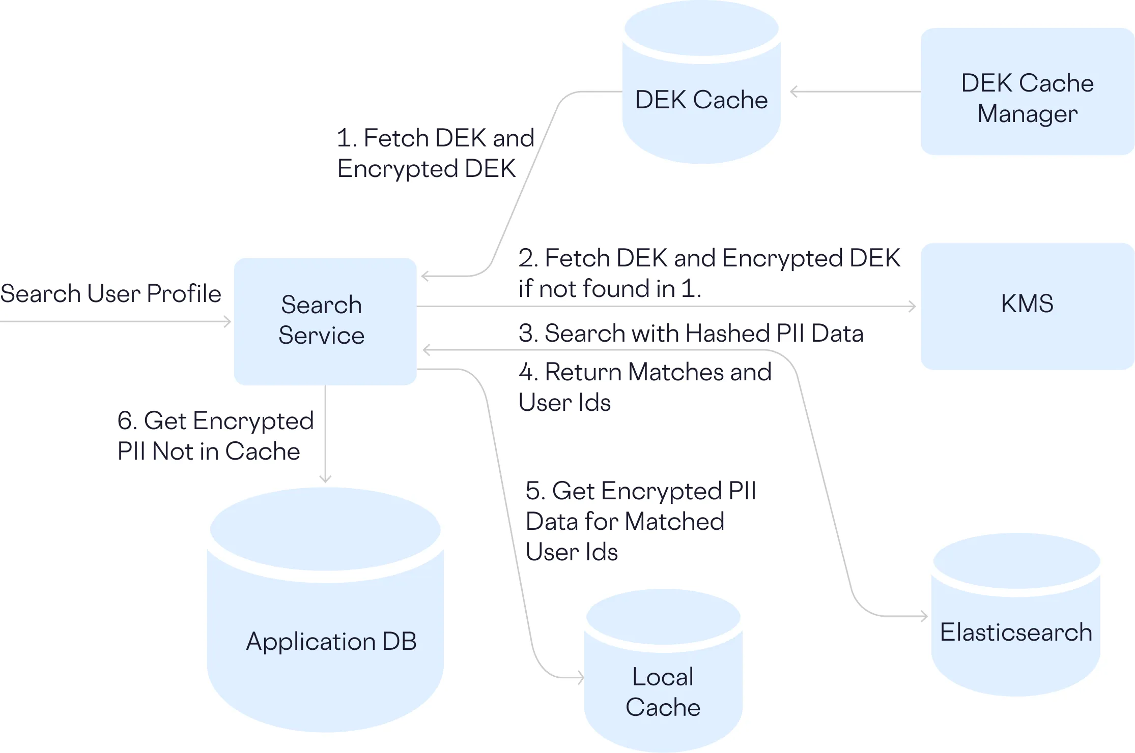 Encrypted PII and your DEKs are mostly retrieved from the cache and PII lookups happen against hashed data.