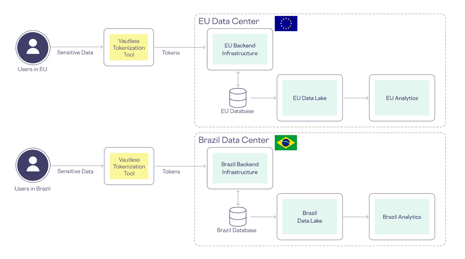 Because vaulted tokens aren’t exploitable, they can be safely stored outside of the EU or Brazil without compromising the personal data of EU or Brazilian residents (which remains safely within those jurisdictions).